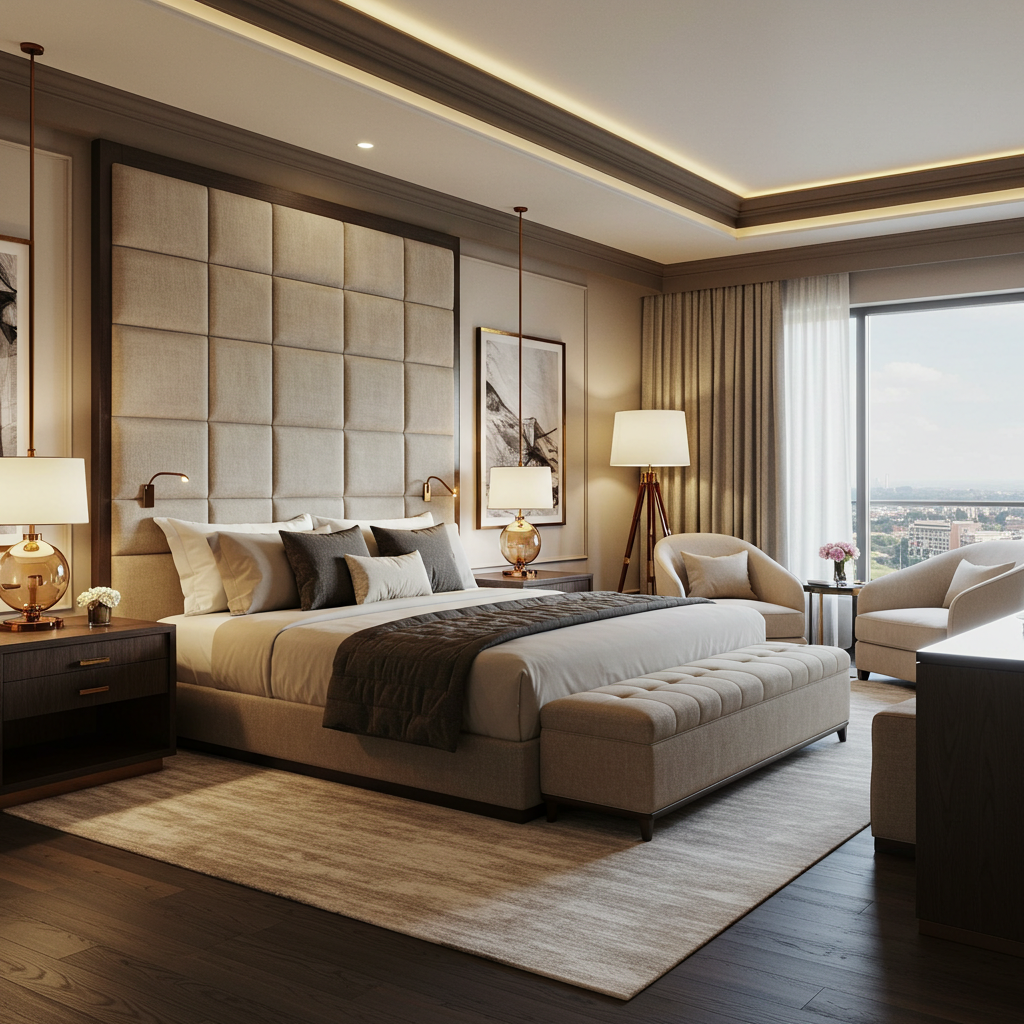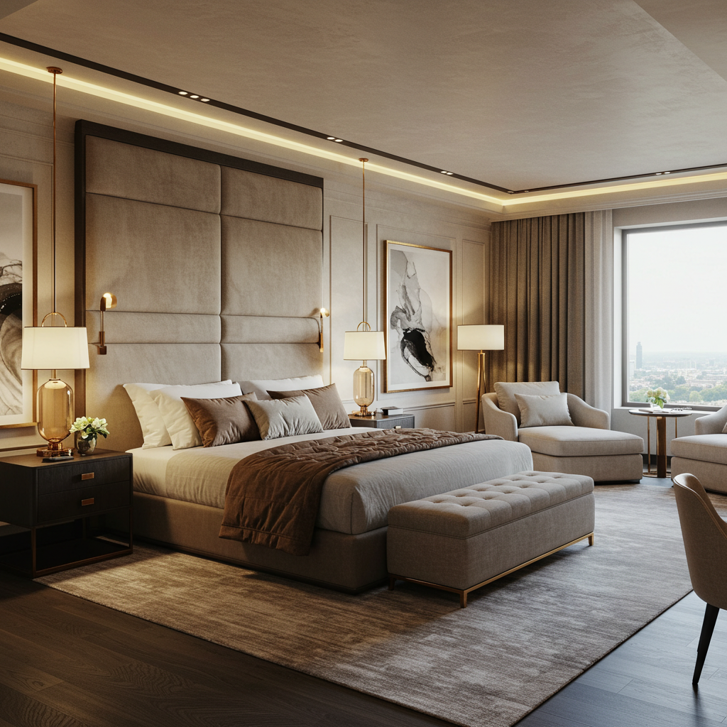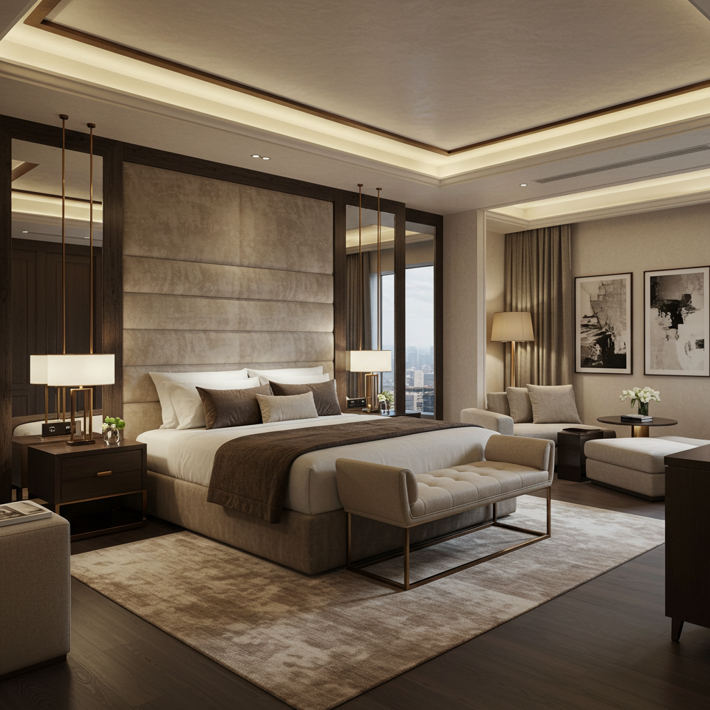 Özel tasarım komodinler, yatak ucu pufu ve entegre ışık oyunlarıyla her sabah yeni bir güne en yüksek enerjiyle başlayın. Modern mimari ile geleneksel konforun en şık buluşması. 🛋️🤎
