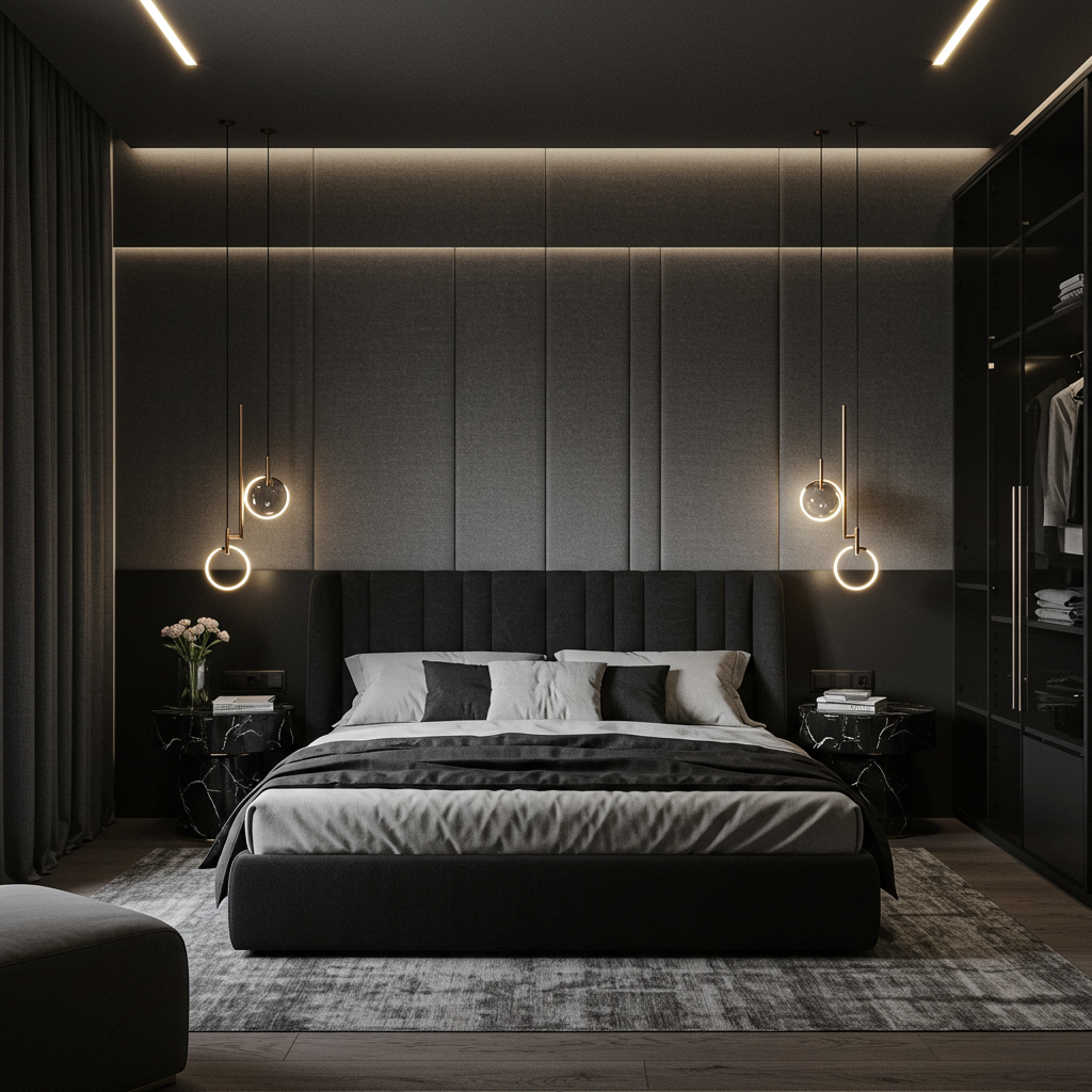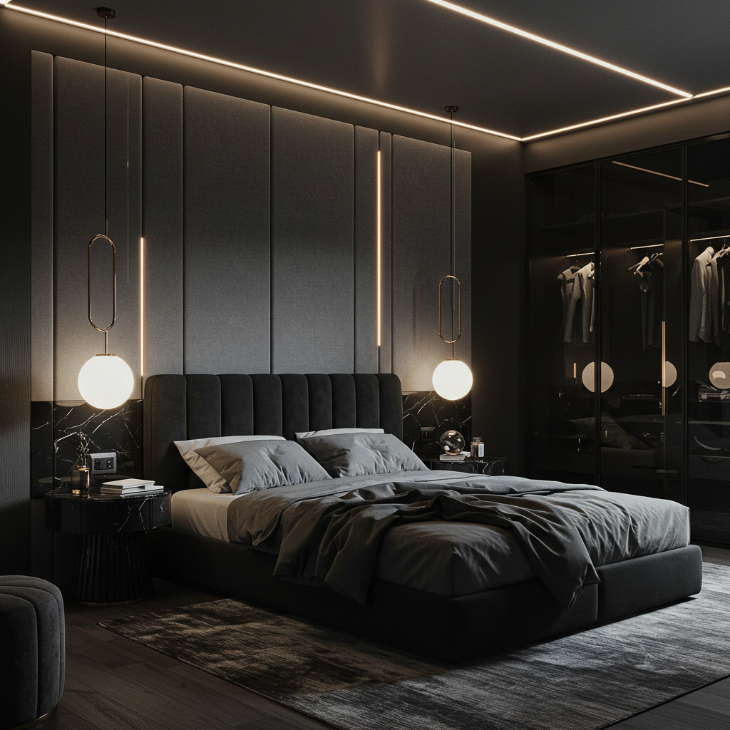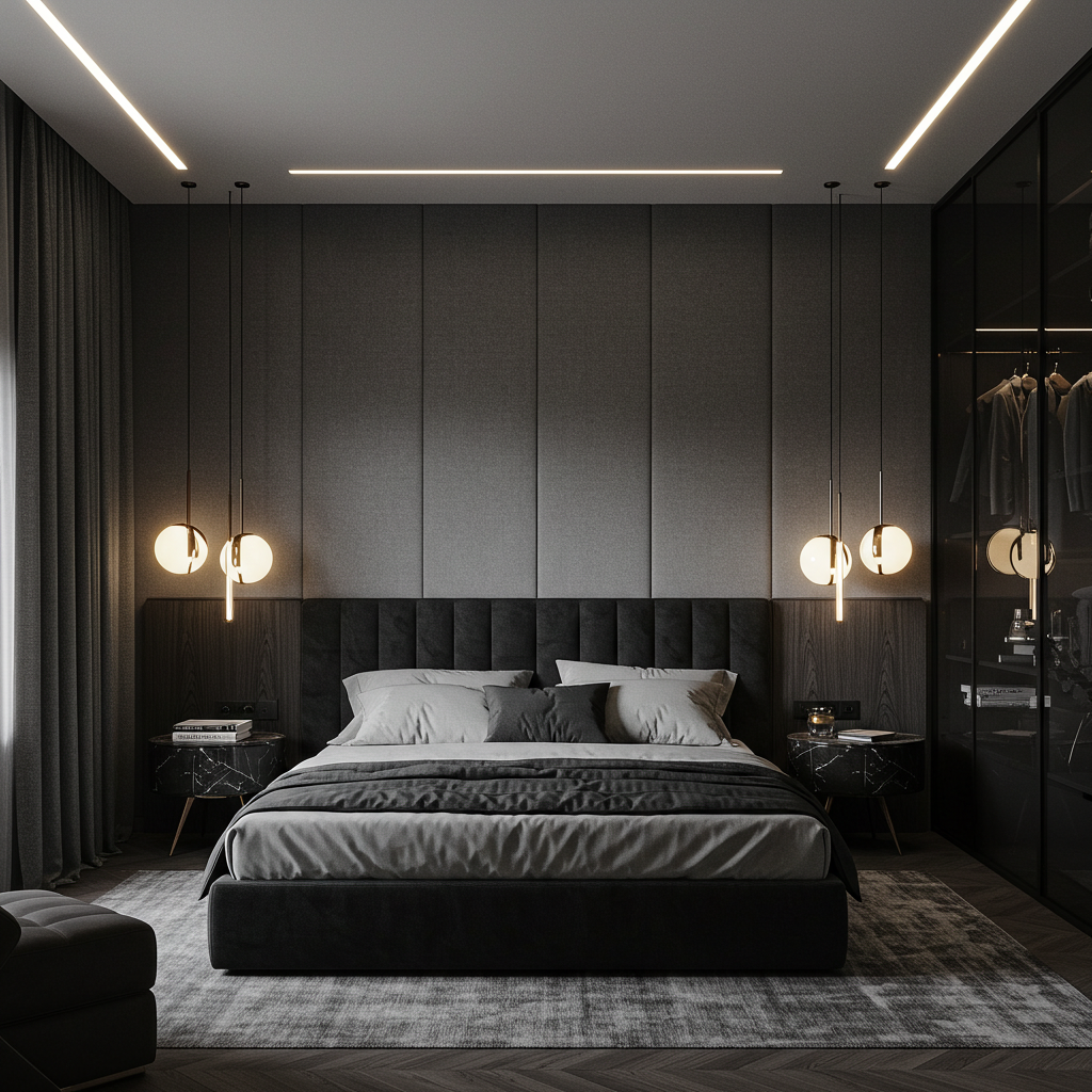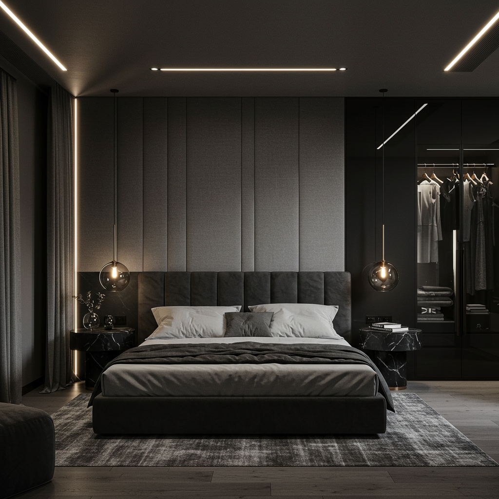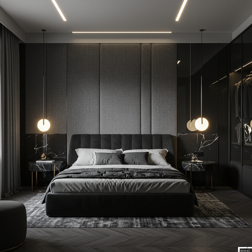 Bu koleksiyon, mobilyada cesur tercihler yapmaktan çekinmeyenler için tasarlanmış gerçek bir prestij göstergesi. Siyah mermerin ağırlığı, dikey tekstil paneller ve teknolojik aydınlatma detaylarıyla birleşerek sıradan bir yatak odasını bir sanat galerisine dönüştürüyor. ✨